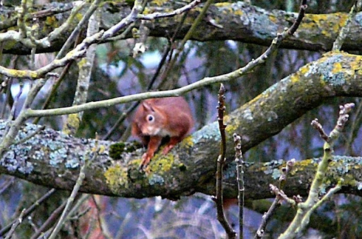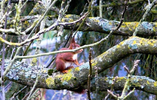 A proximité de notre noyer "fou" (il a ses premières feuilles en juillet et ses fruits en octobre!) vit un bel écureuil roux.